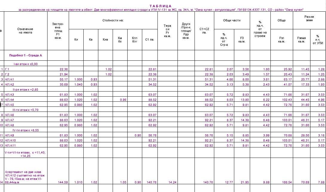 ТАБЛИЦА РАЗПРЕДЕЛЕНИЕ НА ПЛОЩИТЕ