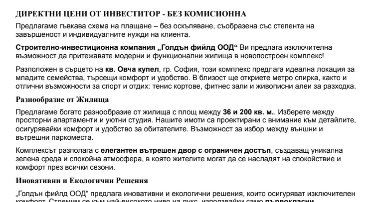 Новопостроен комплекс в гр.София – кв. ОВЧА КУПЕЛ
