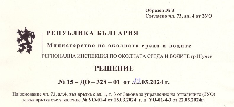 Оператор по третиране на отпадъци – “Модулстрой 2013” ООД